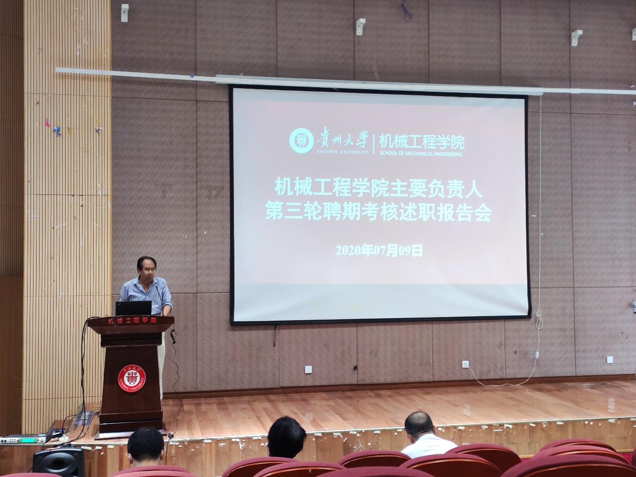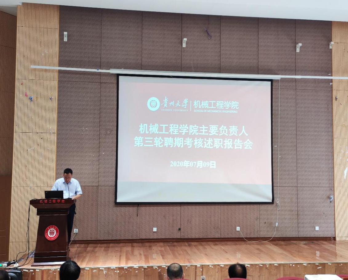 2020年7月9日上午,機(jī)械工程學(xué)院在圓形報(bào)告廳舉辦了學(xué)院主要負(fù)責(zé)人第三輪聘期述職報(bào)告會(huì)。教育部駐貴州大學(xué)黨建聯(lián)絡(luò)員、貴州民族大學(xué)原黨委副書記唐建榮同志蒞臨指導(dǎo)報(bào)告會(huì)。參加報(bào)告會(huì)的學(xué)院領(lǐng)導(dǎo)有安明剛書記、李少波院長,代祥社副書記、楊勤副院長、何鋒副院長、趙津副院長,以及機(jī)械工程學(xué)院全體教職工。報(bào)告會(huì)由代祥社副書記主持。