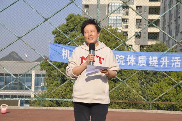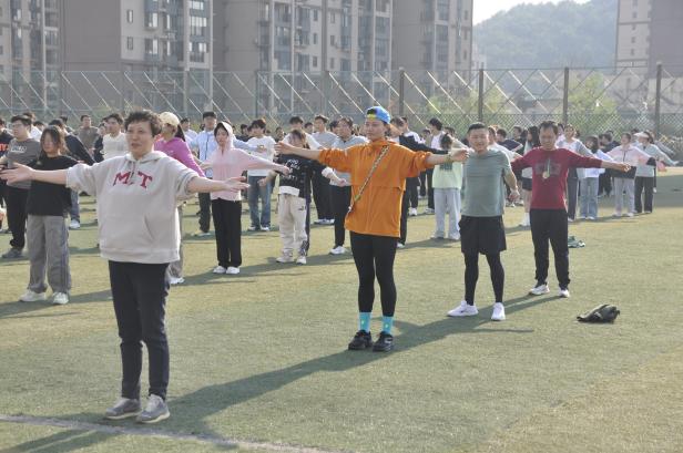 董蔚然宣布體質(zhì)提升工作小組成員名單,強(qiáng)調(diào)體育鍛煉的重要性。體育學(xué)院唐瑞珠老師代表體質(zhì)提升組發(fā)言,鼓勵(lì)大家按照體質(zhì)提升指導(dǎo)方案按時(shí)參加體育鍛煉。隨后,在學(xué)生代表李亨丞的帶領(lǐng)下,同學(xué)們進(jìn)行集體宣誓。跑步開始前,唐瑞珠老師帶領(lǐng)師生們一起做熱身運(yùn)動,在跑步環(huán)節(jié),男女分組依次起跑,教師也參與其中,學(xué)院師生在操場上揮灑汗水,營造了良好的運(yùn)動氛圍。