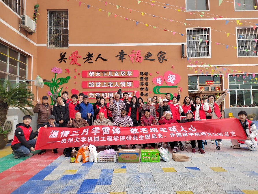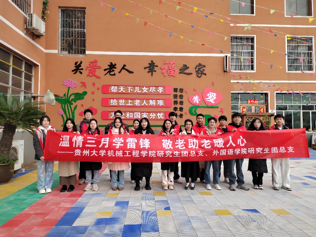 2025 年 3 月 30 日下午,貴州大學(xué)機械工程學(xué)院研究生團總支、外國語學(xué)院研究生團總支與花溪區(qū)幸福頤養(yǎng)中心攜手,共同開展了一場以弘揚新時代雷鋒精神為主題的志愿服務(wù)活動。此次活動旨在引導(dǎo)廣大青年學(xué)生積極踐行雷鋒精神,以及 “奉獻、友愛、互助、進步” 的志愿精神,通過實際行動紀念雷鋒,深入弘揚雷鋒精神,大力宣傳其在新時代的重要意義,并樹立學(xué)雷鋒先進典型,讓雷鋒精神在新時代持續(xù)傳承、璀璨奪目。
