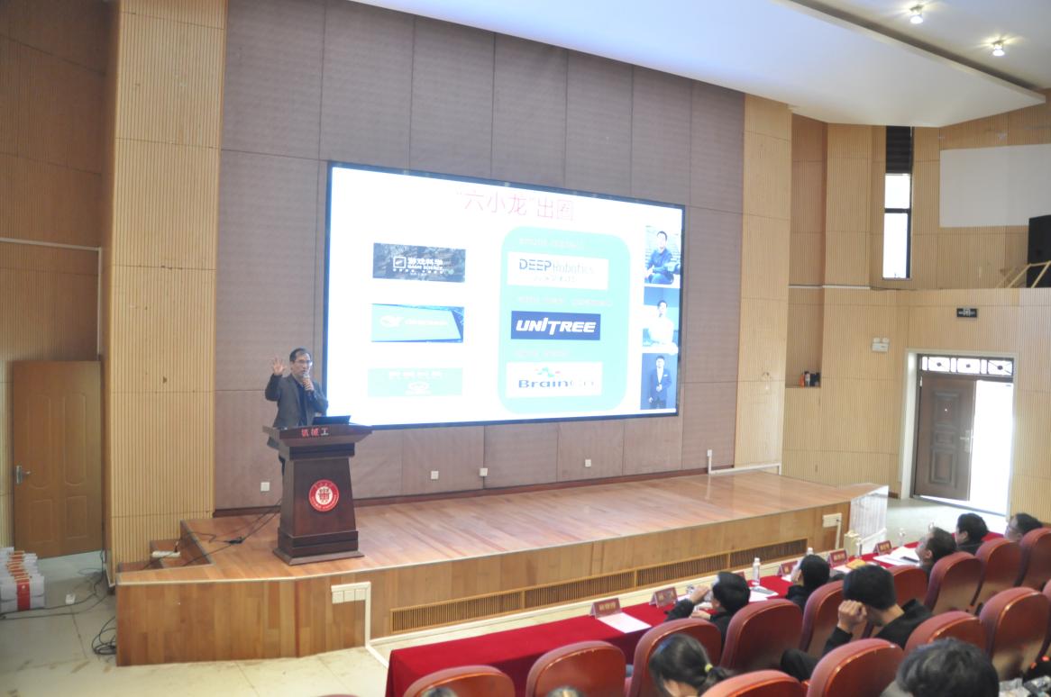 李家春以“杭州六小龍”火爆出圈的例子,一段機(jī)器人在復(fù)雜地形運(yùn)動(dòng)并做出高難度動(dòng)作的視頻,引出機(jī)械專業(yè)在未來的發(fā)展前景,隨后以學(xué)院近兩年考研數(shù)據(jù)的對(duì)比,向同學(xué)們強(qiáng)調(diào)選修博學(xué)數(shù)學(xué)、英語的重要性,鼓勵(lì)動(dòng)員同學(xué)積極備考升學(xué),選修學(xué)校組織開展的博學(xué)英語、數(shù)學(xué)課。