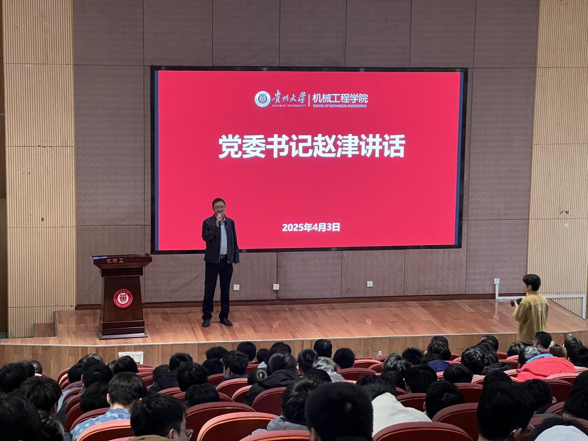 為幫助大三學(xué)生明確未來方向,合理規(guī)劃學(xué)業(yè)與職業(yè)發(fā)展,4月3日,機(jī)械工程學(xué)院在圓形報(bào)告廳召開了2022級(jí)本科生年級(jí)大會(huì)。此次大會(huì)聚焦考研動(dòng)員、出國(guó)留學(xué)、入伍以及就業(yè)政策解讀,為同學(xué)們答疑解惑,指引前行方向。學(xué)院黨委書記趙津、正處級(jí)組織員董蔚然、副院長(zhǎng)李家春、副院長(zhǎng)唐正強(qiáng)出席,外國(guó)語學(xué)院樊章俊老師、學(xué)院教務(wù)科陳馨老師以及2022級(jí)全體同學(xué)參加。