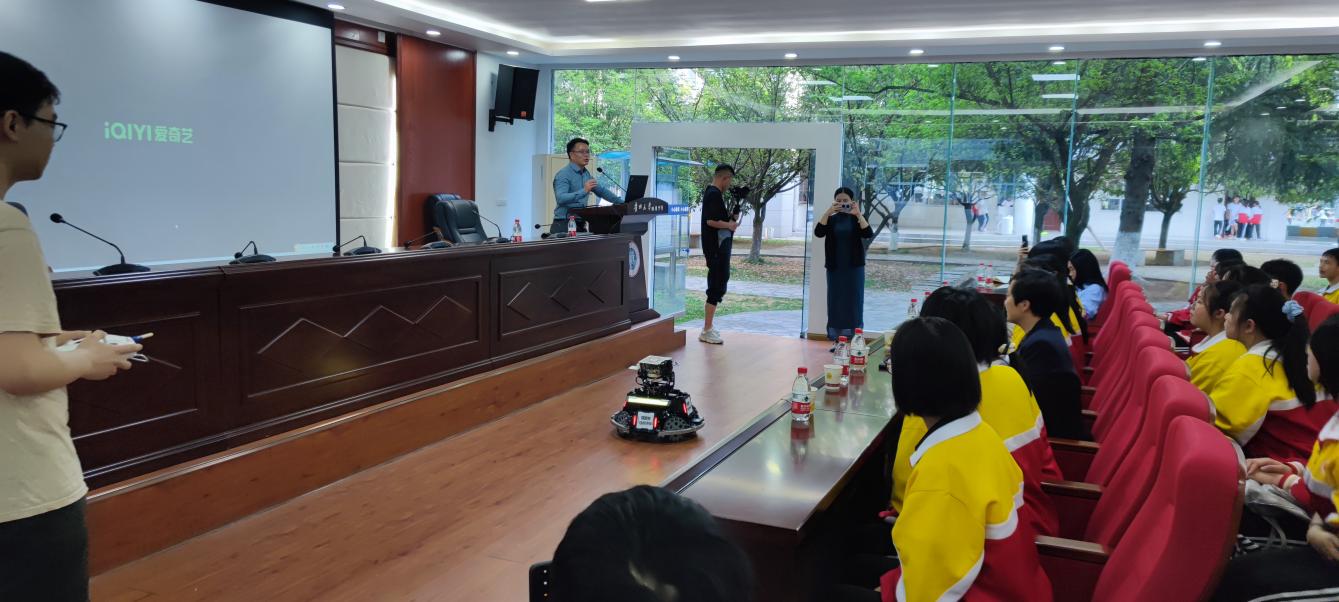 為充分發(fā)揮學(xué)者影響力,普及推動科學(xué)知識,我院副院長唐正強(qiáng)教授于4月17日走進(jìn)貴州大學(xué)附屬中學(xué)為師生開展主題為“智能時代,智創(chuàng)未來”的科普講座。他通過生動的視頻演示和PPT配合講解,深入淺出地介紹了人工智能、智能制造等前沿科技的發(fā)展趨勢及其對未來的影響和我院教師在智能技術(shù)領(lǐng)域的探索與實踐,并向同學(xué)們展示了我院學(xué)生制作的機(jī)器人,激發(fā)學(xué)生關(guān)注科技熱情。
