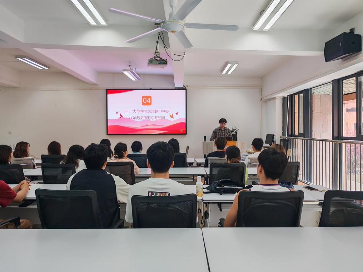 學(xué)生科趙麗芳老師帶領(lǐng)同學(xué)們深入學(xué)習(xí)中央八項(xiàng)規(guī)定出臺(tái)的相關(guān)背景、主要內(nèi)容和重要意義,引導(dǎo)同學(xué)們思考如何將中央八項(xiàng)規(guī)定融入到學(xué)習(xí)和生活中。學(xué)生黨員雷繽演結(jié)合自己的學(xué)習(xí)、生活和做學(xué)生干部工作的體會(huì)和感受,號(hào)召同學(xué)們要積極踐行中央八項(xiàng)規(guī)定。在學(xué)習(xí)上杜絕抄襲拼湊,認(rèn)真開(kāi)展實(shí)驗(yàn),用真實(shí)的數(shù)據(jù)進(jìn)行論證,在學(xué)科競(jìng)賽上要勇攀高峰,提高創(chuàng)新能力和動(dòng)手能力;在生活上,要踐行勤儉節(jié)約,堅(jiān)持“光盤行動(dòng)”、樹(shù)立理性消費(fèi)意識(shí),不鋪張浪費(fèi);在學(xué)生工作上,開(kāi)展活動(dòng)提前做好詳細(xì)的規(guī)劃和預(yù)算,避免超支浪費(fèi),合理利用學(xué)校現(xiàn)有的場(chǎng)地和設(shè)備,減少不必要的開(kāi)支,在與同學(xué)溝通交流時(shí),摒棄官僚作風(fēng),真心實(shí)意為同學(xué)服務(wù),提高工作效率,切實(shí)解決同學(xué)們?cè)趯W(xué)習(xí)和生活中遇到的實(shí)際問(wèn)題。