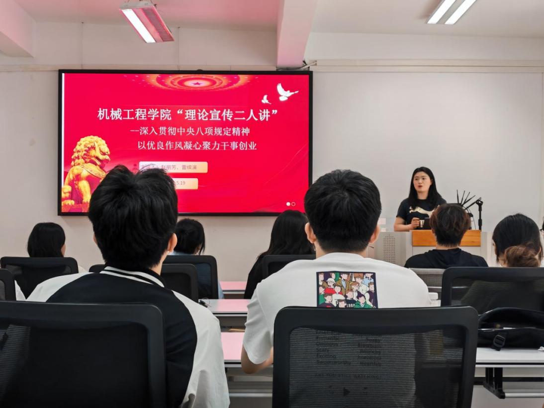 為深入貫徹中央八項(xiàng)規(guī)定精神學(xué)習(xí)教育,以優(yōu)良作風(fēng)凝心聚力、干事創(chuàng)業(yè)。5月 19日,機(jī)械工程學(xué)院本科生第三黨支部以中央八項(xiàng)規(guī)定為學(xué)習(xí)主題,開(kāi)展“理論宣傳二人講”活動(dòng)。