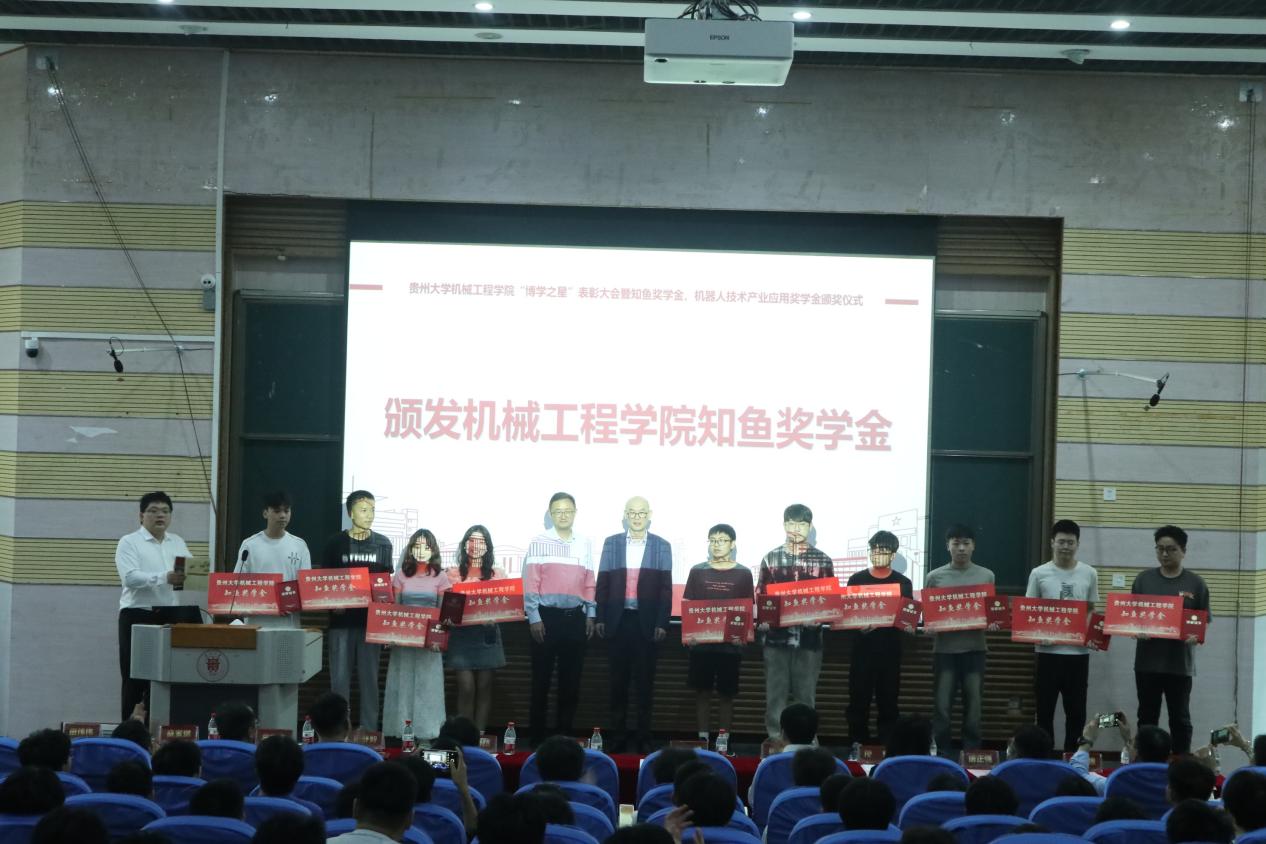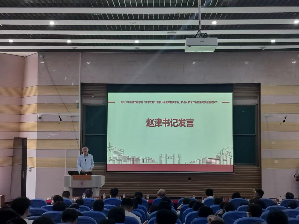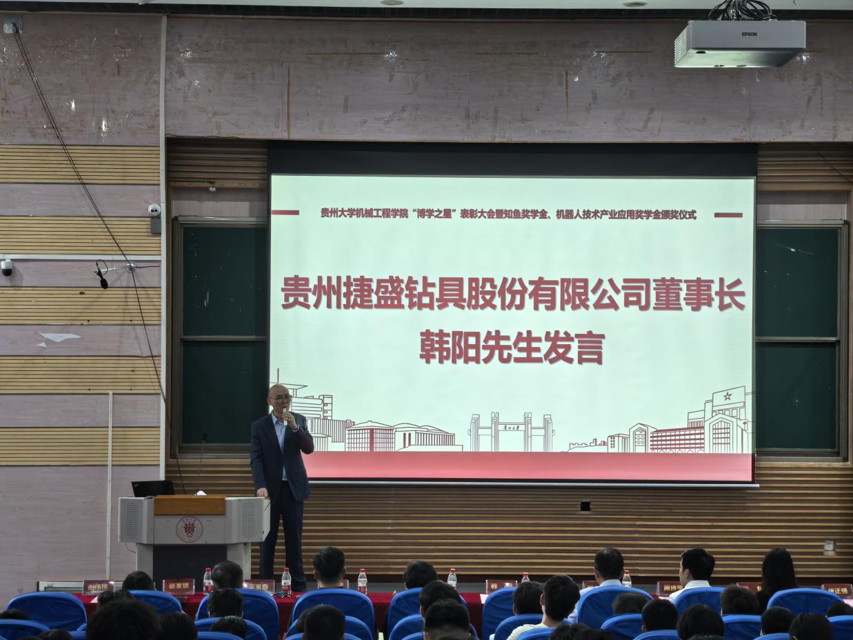為表彰在學(xué)習(xí)成績(jī)、科研創(chuàng)新等方面有突出表現(xiàn)的畢業(yè)班同學(xué),2024年6月27日下午,貴州大學(xué)機(jī)械工程學(xué)院“博學(xué)之星”表彰大會(huì)暨知魚(yú)獎(jiǎng)學(xué)金、機(jī)器人技術(shù)產(chǎn)業(yè)應(yīng)用獎(jiǎng)學(xué)金頒獎(jiǎng)儀式在西校區(qū)117報(bào)告廳舉行。貴州捷盛鉆具股份有限公司董事長(zhǎng)韓陽(yáng)、重慶安尼森智能科技有限公司技術(shù)總監(jiān)周詩(shī)宇、貴州捷盛鉆具股份有限公司供應(yīng)鏈總監(jiān)安燕、國(guó)際業(yè)務(wù)二部部長(zhǎng)周舒毅、企劃部主管田偉偉與機(jī)械工程學(xué)院黨委書(shū)記趙津、正處級(jí)組織員董蔚然、黨委副書(shū)記廖燁、副院長(zhǎng)李家春、副院長(zhǎng)唐正強(qiáng)出席會(huì)議,學(xué)生科全體輔導(dǎo)員、獲獎(jiǎng)學(xué)生代表及兩百余名機(jī)械學(xué)子參會(huì),大會(huì)由學(xué)生科副科長(zhǎng)王嘉斌主持。