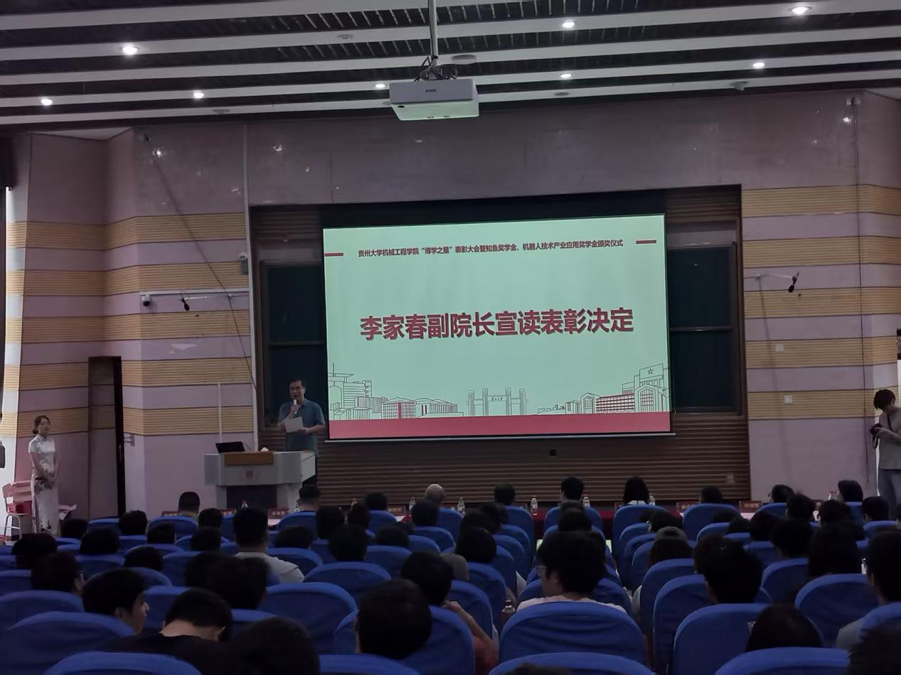副院長(zhǎng)李家春宣讀2025年“博學(xué)之星”和頒發(fā)知魚(yú)獎(jiǎng)學(xué)金、機(jī)器人技術(shù)產(chǎn)業(yè)應(yīng)用獎(jiǎng)學(xué)金的決定。