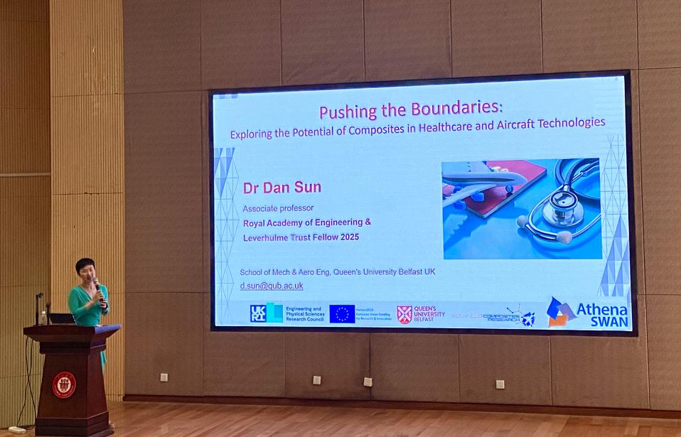 孫丹副教授聚焦先進復合材料的前沿應用。在醫(yī)療方面,她開發(fā)的智能復合植入材料不僅能替代受損骨骼,更能實現精準藥物釋放和可控殺菌,為復雜骨病治療提供全新解決方案;在航空領域,其團隊針對新一代可回收飛機材料,創(chuàng)新性地優(yōu)化了加工工藝,顯著提升制造效率與環(huán)保性能。兩項研究均體現了復合材料技術對產業(yè)升級和人類健康的積極推動作用。