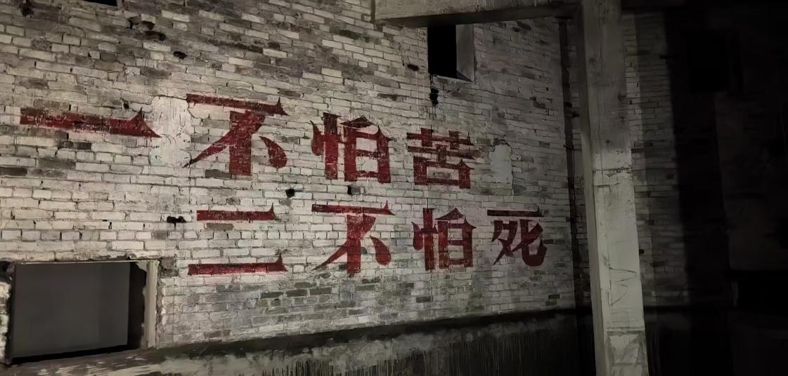 而今處于新時(shí)代的我們,已不見先輩們洞中燈火下?lián)]汗如雨、艱辛勞作的身影,但洞壁上一行行斑駁卻遒勁的紅色標(biāo)語(yǔ),卻依舊如炬火般灼亮,似號(hào)角般回響,在歲月深處默默訴說著那段滾燙的過往。