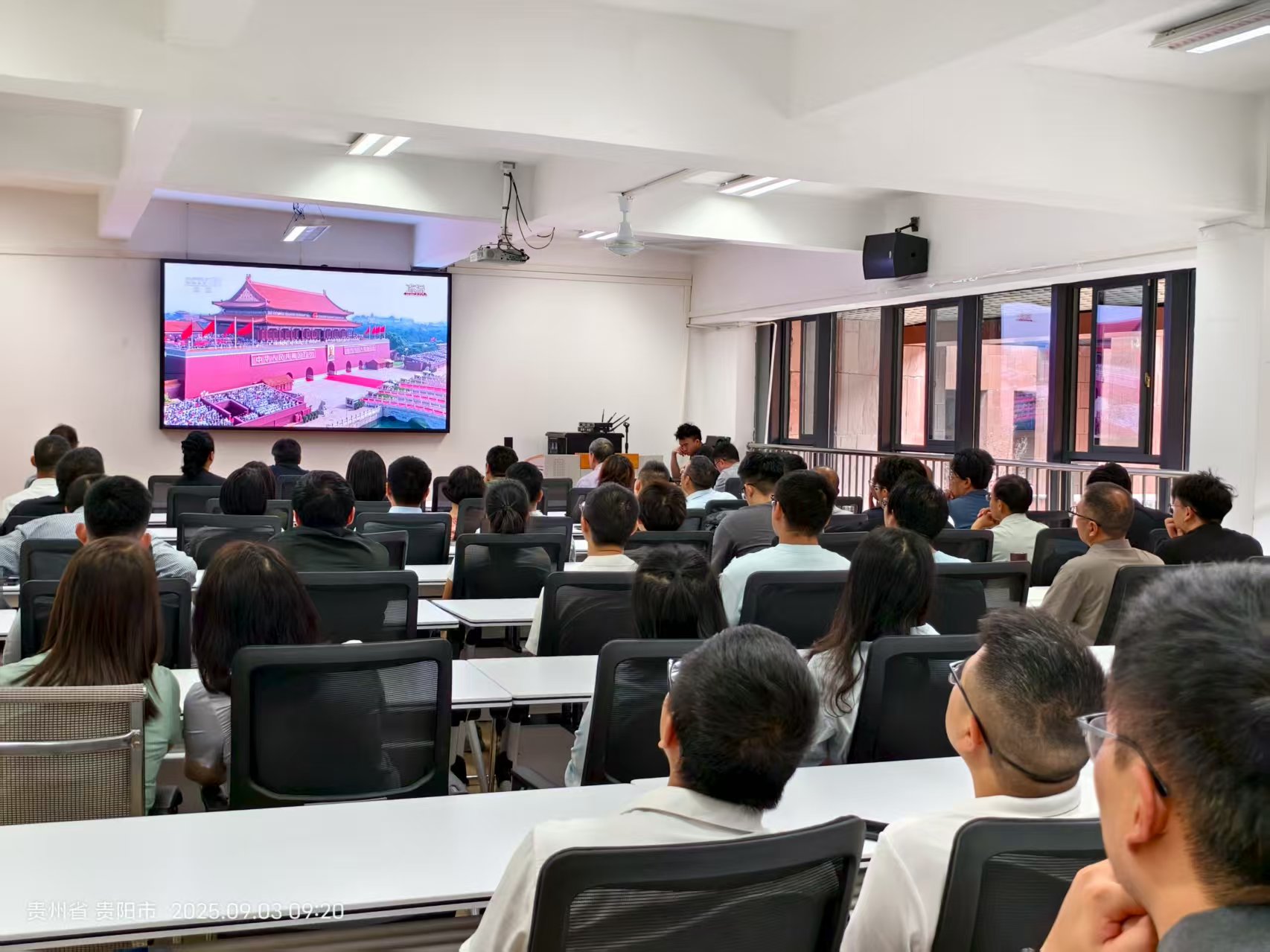 2025年9月3日上午9時(shí),機(jī)械工程學(xué)院組織全體師生觀看了紀(jì)念中國人民抗日戰(zhàn)爭暨世界反法西斯戰(zhàn)爭勝利80周年閱兵式的現(xiàn)場直播,全國模范教師、我學(xué)院教授張富貴老師受邀在紀(jì)念中國人民抗日戰(zhàn)爭暨世界反法西斯戰(zhàn)爭勝利80周年大會(huì)現(xiàn)場觀禮,學(xué)院領(lǐng)導(dǎo)班子、國家級(jí)領(lǐng)軍人才張正文教授等集中觀看了直播活動(dòng)。