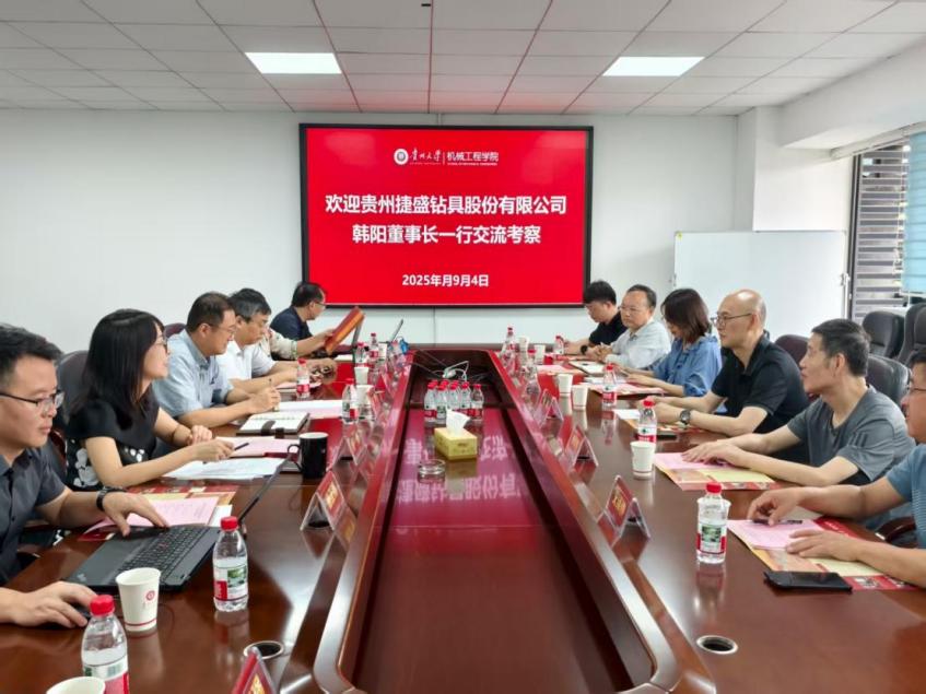2025年9月4日上午,貴州捷盛鉆具股份有限公司與貴州大學(xué)機(jī)械工程學(xué)院校企合作簽約儀式在學(xué)院518會(huì)議室舉行。貴州捷盛鉆具股份有限公司董事長(zhǎng)韓陽、副總經(jīng)理艾澤鐘、技術(shù)顧問熊雨峰、機(jī)械主任工程師汪國軒、助理機(jī)械工程師陶光勛、項(xiàng)目專員葉偉琴及貴州大學(xué)機(jī)械工程學(xué)院領(lǐng)導(dǎo)班子、系(所)相關(guān)教師代表參加了簽約儀式。這次合作是繼2022年貴州捷盛鉆具股份有限公司在我院捐贈(zèng)設(shè)立“知魚”獎(jiǎng)學(xué)金后的深化合作,標(biāo)志著雙方在產(chǎn)教融合、協(xié)同育人方面邁出了新的步伐。
