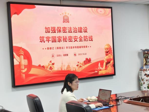 最后,由先進技術(shù)研究院崔雯雯老師為同學們進行了專題輔導(dǎo)授課。崔老師以“加強保密法治建設(shè),筑牢國家秘密安全防線”為主題,圍繞新修訂《保密法》的核心要義和重點內(nèi)容進行了系統(tǒng)宣講和深入解讀。她結(jié)合高??蒲泄ぷ鞯奶攸c,詳細講解了在日??蒲谢顒印⑸婷苋藛T管理、載體保管、信息公開等過程中可能存在的泄密風險點及防范措施,內(nèi)容詳實,案例生動,使同學們對保密法律法規(guī)有了更清晰的理解,對如何在實際科研工作中履行保密職責有了更明確的認識。