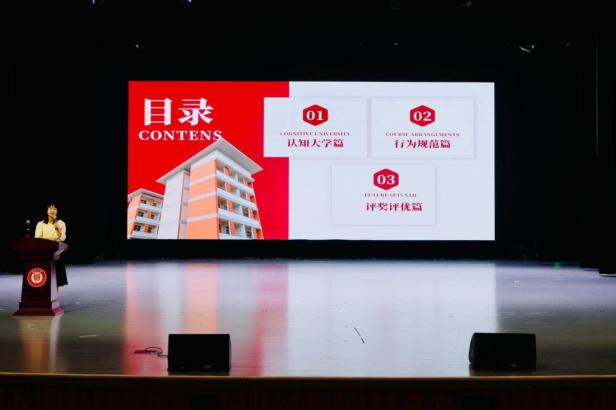 緊接著,學(xué)院黨委副書記廖燁老師針對(duì)學(xué)生管理工作與新生交流。她從日常行為規(guī)范、獎(jiǎng)助勤貸政策、心理健康服務(wù)、校園文化活動(dòng)等方面入手,既明確了紀(jì)律要求,也展現(xiàn)了學(xué)院對(duì)學(xué)生的關(guān)懷——不僅解讀了獎(jiǎng)學(xué)金、助學(xué)金的申請(qǐng)條件,還介紹了心理咨詢室的服務(wù)內(nèi)容與校園活動(dòng)的參與方式,引導(dǎo)新生學(xué)會(huì)自我管理、主動(dòng)成長(zhǎng),在集體中收獲溫暖與進(jìn)步。